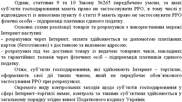 Но деятельность интернет-магазинов, в отличие от розничных точек, проверить сложнее. Ранее мы обращались в Налоговую Службу, чтобы разобраться в том, как регулируется интернет-торговля в Украине, и можно ли проверить и привлечь к ответственности нелегальных интернет-коммерсантов. Предоставляем цитату - скриншот ответа.