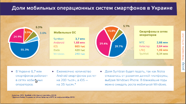Согласно данным таможенной службы, в позапрошлом году на территорию Украины было ввезено примерно 8,975 миллионов мобильных телефонов. В розничной торговле, по данным компании Gfk Украина, было продано 8,3 млн. Такие данные были получены в результате панельного исследования точек розничной торговли телекоммуникационной техники. За 2010 год эти показатели были на уровне 9,989 — 7,6 миллионов мобильных устройств. Это означает, что каждый год сотни тысяч мобильников либо остаются на полках, либо продаются через интернет-магазины.