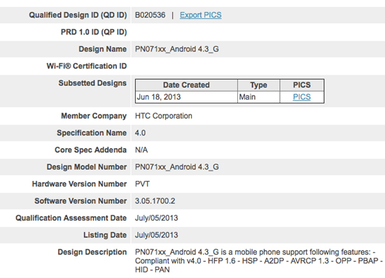 Сертификация в Bluetooth SIG всегда проходится перед самым запуском продукта, иногда даже после презентации. Это говорит о том, что на виртуальных «полках» Google Play уже очень скоро должна появиться версия HTC One GE с новой версией ОС на борту, а ждать этого стоит вместе с анонсом Android 4.3 и обновлением всех актуальных Nexus и смартфонов Google Edition. Конечно, сроки сейчас знают только Google и партнеры, но вероятно произойдет это в течение пары-тройки недель.