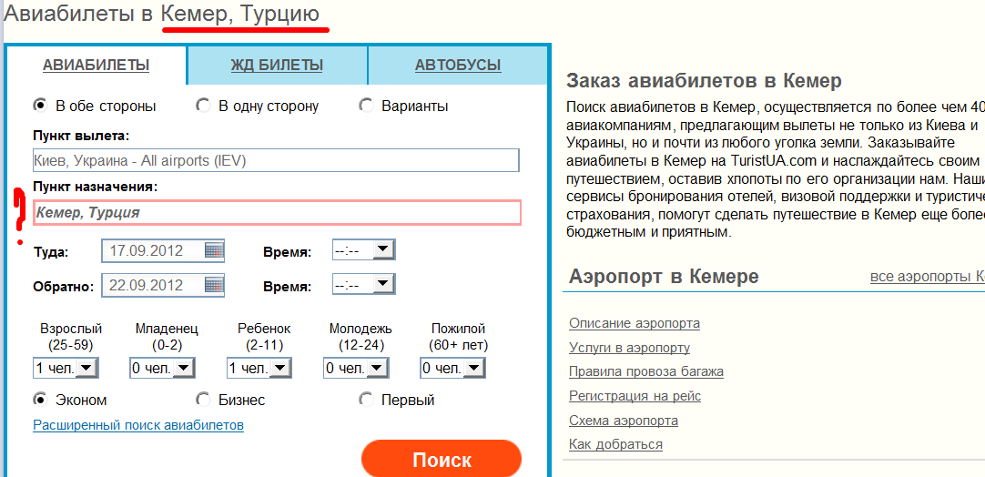 Ещё одна организация, которая с подачи поисковой системы предлагает online-бронирование авиабилета в Кемер, - TuristUA.