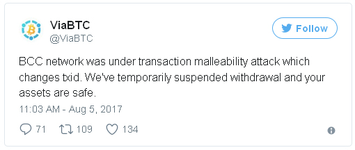 Из-за атаки ViaBTC временно отключил вывод средств. Как объяснила компания это было сделано для того, чтобы никто из пользователей не пострадал.