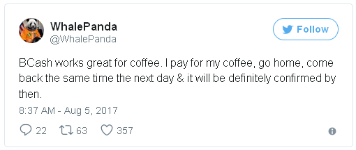 Внезапная атака на сеть - это не единственная проблема Bitcoin Cash, из-за уровня сложности сети и из-за того, что слишком мало майнеров занимаются майнингом Bitcoin Cash время подтверждения транзакции в этой сети может достигать нескольких часов. Как иронично отметил один из криптовалютных евангелистов WhalePanda в своем твиттере:
