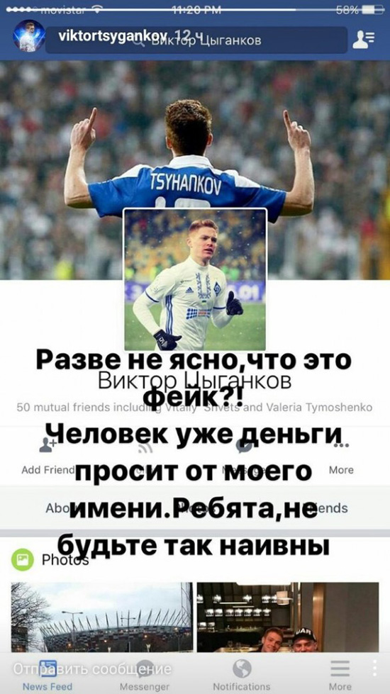 Півзахисник київського "Динамо" Віктор Циганков у своєму Instagram попросив уболівальників бути пильними – шахраї в соцмережах просять допомогти з грошима.