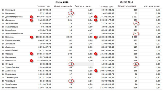 В Киевской области в течение февраля 2016 года было совершено 3039 тендеров, тогда как в Сумской области с помощью системы Prozorro было реализовано 4 тендера, сообщил заместитель министра экономического развития Максим Нефьодов на своей странице в Facebook.