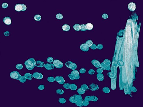 Вулери и Абижауди создали коллекцию из 13 картин, нарисованных акриловыми красками, отобразив те самые следы от пальцев пользователей. Картинки получились разными, поскольку в их основе лежат разные приложения: одна базируется на перемещениях по экрану пальца при игре в Fruit Ninja, вторая – при общении в Facebook, и так далее. За основу взяли iPad.
