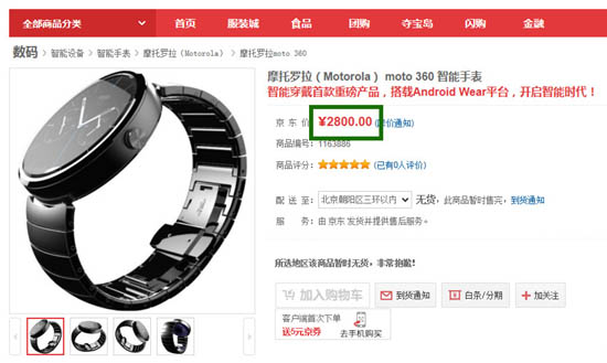 И вот крупный китайский ритейлер Jingdong открыл предзаказ на гаджет на своем сайте. Стоимость Moto 360 — 2 800 юаней (примерно 450 долларов или 15 400 рублей по текущему курсу). При этом конкуренты — LG G Watch и Samsung Gear Live оценены чуть ли не в два раза дешевле — в 1 500 юаней (240 долларов).