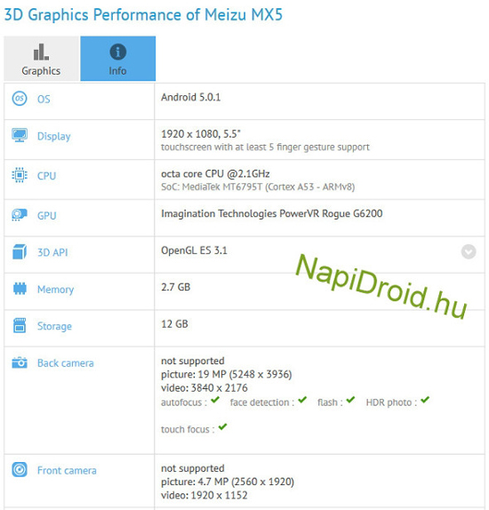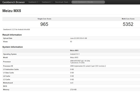 Стоит отметить, что вдобавок к данным от информаторов, близким к производственным делам Meizu, в базе данных бенчмарков GFXBench и Geekbench также появились упоминания о технических характеристиках аппарата. Если собрать все сведения воедино, то Meizu MX5 получит: