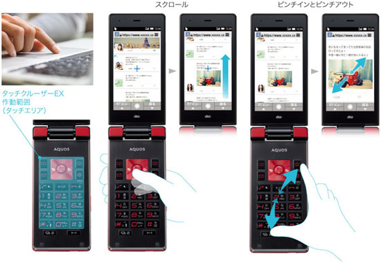 Гораздо интереснее в устройстве вовсе не технические характеристики, а система Touch Cruiser, которая позволяет управлять аппаратом при помощи жестов, но не по экрану, а по цифровому блоку. Решение необычное и весьма подходящее для раскладушек с компактными дисплеями.