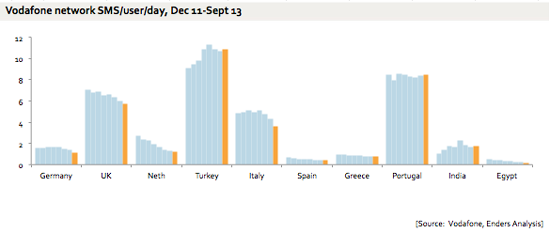 Оператор Vodafone опубликовал данные о трендах использования СМС в разных странах.