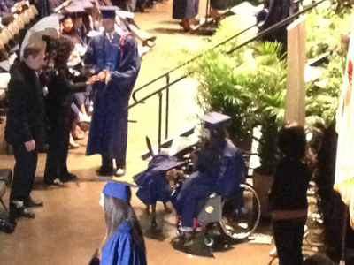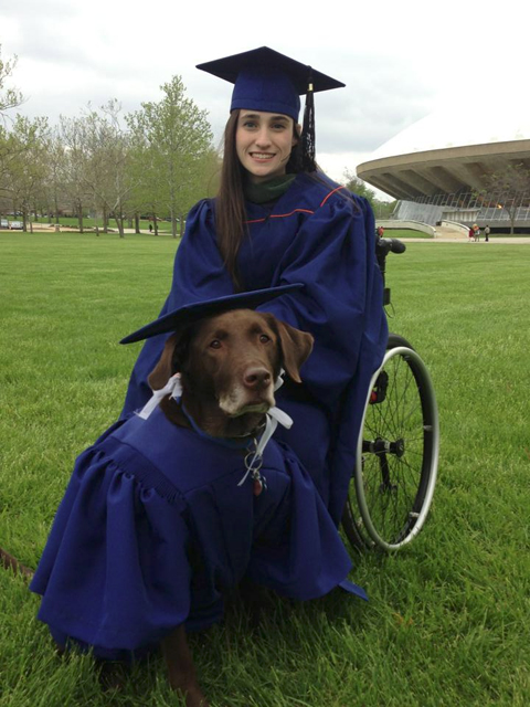 В Сети набирает популярность фотографии, на которых запечатлены студентка с ограниченными возможностями из США и ее четвероногий друг. Пес-поводырь шоколадного окраса, похожий на лабрадора, привел хозяйку на выпускную церемонию. При этом сам он был одет, как и другие учащиеся, — в синюю мантию и квадратную академическую шапочку.