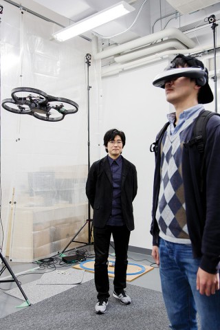 Не менее интересный проект под названием "Flying Head" является по сути летающим дроном. Его управление осуществляется с помощью движений человека, на которого надета специальная гарнитура. Пользователь получает изображение с камер, установленных на беспилотном летательном аппарате и корректирует направление полёта движением тех или иных частей тела. Это может быть полезно как в спорте, чтобы наблюдать за происходящим на поле, так и для проведения спасательных операций или разведки в тех частях планеты, где пребывание человека опасно для жизни.