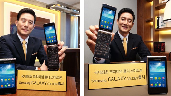 В прошлом году компания порадовала азиатских ценителей «кнопочной классики» новым Galaxy Golden. Гаджет выполнен в стиле Note 3, но спецификаций известного флагмана не получил. Не самый производительный по современным меркам смартфон от A-бренда имеет: Snapdragon 400, 1.5 ГБ «оперативки», пару дисплеев диагональю 3.7″ (480×800 пикселей), камеры на 1.9 МП и 8 МП, поддержку LTE и аккумулятор на 1820 мА-ч. Цена этой «раритетной современности» — $755.