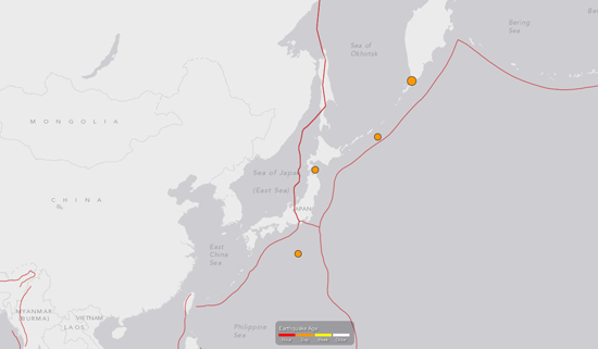 Судя по карте, в Японии "зреет" очередное землетрясение.