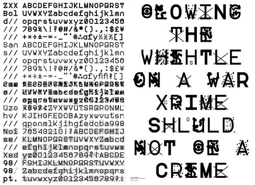 Впрочем, творческая мысль не дремлет, и помимо ПО был также разработан особый шрифт. По словам Санга Муна (Sang Mung), выпускника школы дизайна Род-Айленда, шрифт ZXX поможет более надежно защитить конфиденциальную информацию. Суть проекта в том, что ZXX крайне тяжело поддается расшифровке системами Агентства национальной безопасности. Впрочем, лишь пока. При желании, специалистам АНБ, скорее всего, не составит труда научиться читать и этот шрифт.