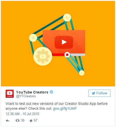 С целью получения реальных отзывов от действующих создателей контента в YouTube компания Google запускает так называемую программу «Доверенного тестера» (Trusted Tester) для приложения Creator Studio. Приложение помогает создателям видео управлять своим аккаунтом, отвечать на комментарии и видеть аналитику о популярности того или иного видео.