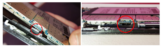 На изображениях ниже демонстрируются оба рычажка, которые и удерживают стилус внутри, если его вставить не той стороной. На фотографии слева он сломан.