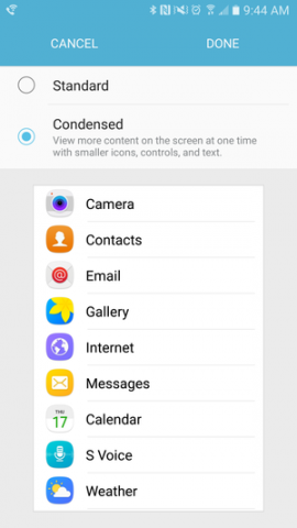 Несмотря на то, что многие современные Android-смартфоны оснащены большими дисплеями, пользовательский интерфейс не позволяет отображать больше контента. Один из разработчиков с XDA-Developers недавно обнаружил в смартфонах Galaxy S7 и Galaxy S7 Edge скрытую функцию настройки масштабирования Condensed Display, которая позволяет разместить на экране большее количество элементов. Благодаря виджету Nova Launcher удалось определить скрытый процесс настройки под названием DisplayScallingActivity.