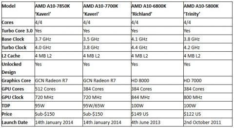 Долгожданный релиз ускоренный процессорных элементов Kaveri от компании AMD намечен на середину января, и мы уже рассказывали о спецификациях будущей флагманской модели A10-7850K. Теперь появилась возможность поведать о другом представителе новой линейки чипов, модели A10-7700K, и рассказать об ориентировочной стоимости APU нового поколения.