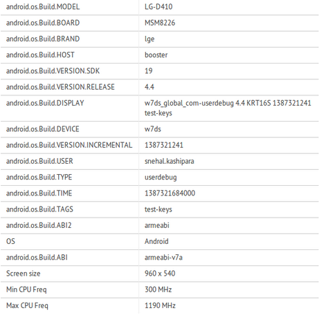 На сайте бенчмарка GFXbench появился неизвестный ранее смартфон LG D410. Вполне возможно, что за этим индексом скрывается LG G2 mini. Смартфон оснащён процессором Qualcomm Snapdragon 400, графикой Adreno 305, экраном с разрешением 960x540 точек. Ранее сообщалось, что у G2 mini будет дисплей с диагональю 4,7". На устройство предустановлена ОС Android 4.4 KitKat. Отметим, что нет никаких гарантий, что это именно LG G2 mini.