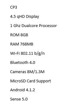 LlabTooFeR, известный ранее как @Football, опубликовал в своем твиттере набор спецификаций для группы операторских смартфонов, которые будут продаваться на территории Китая. По внешнему виду и поддерживаемым типам сетей они будут отличаться, однако техническая платформа для них будет единой. Экран этих устройств при диагонали 4.5 дюйма будет иметь разрешение 960 x 540, внутри установят двухъядерный процессор с частотой 1 ГГц, 768 МБ оперативной памяти и 8 ГБ для записи данных. Естественно, имеется слот для установки MicroSD-карт. Смартфоны будут поддерживать Bluetooth 4.0 и Wi-Fi b/g/n. Основная камера этих устройств имеет разрешение 8 Мп, фронтальная – 1.3 Мп. Самое интересное – программная начинка: Android 4.1.2 с фирменной оболочкой HTC Sense 5!