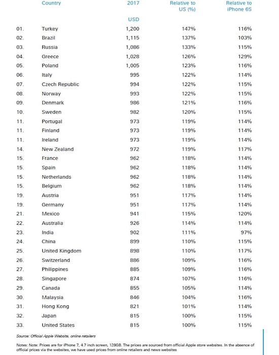 На конечную стоимость iPhone влияют экономические факторы: не только разница валют, но также торговые пошлины и налоги с продаж, которые у каждого государства разные. Кроме того, цену на некоторые модели может регулировать сама Apple.