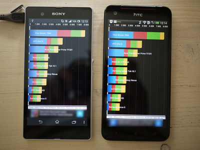Производительность обоих аппаратов одинакова - и там и там четырехъядерные процессоры Qualcomm, работающие на частоте 1,5 ГГц и графика Adreno 320. Вот результаты теста Quadrant: видно, что смартфоны пришли буквально "ноздря в ноздрю". Это максимальные показатели для имеющихся сейчас в продаже Android-смартфонов: