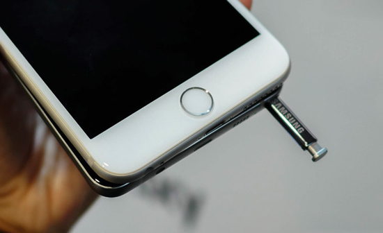 Принципиальным отличием Galaxy Note 5 от iPhone 6 Plus является наличие у первого стилуса S Pen, предназначенного для рисования, создания заметок и списков дел. Он размещен в специальном гнезде корпуса в нижем правом углу. Чтобы достать его, требуется нажать на его основание, и перо выскочит из слота.