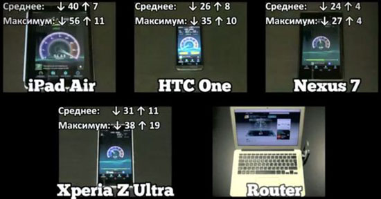 Сравнение скорости LTE-подключения на iPad Air, HTC One, Xperia Z Ultra, Nexus 7 и 4G-модеме