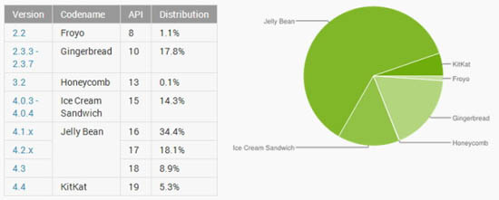 Ровно на один процент вырос Android 4.2 — этим он обязан стремительно развивающемуся рынку Китая и некоторых других стран, а также огромному количеству производителей дешевых моделей из Поднебесной, использующих устаревшие чипы MediaTek. Интересно, что эта тенденция только набирает обороты. В то же время более свежий Android 4.3 впервые потерял долю, причем сразу 0,7%.