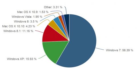 Посещаемость множества веб-сайтов показала, что доля Windows 8.1 составляет сейчас 11,16% (+0,61%), а более старая версия Windows 8 установлена на 3,5% ПК (-0,02%). Номером 1 остаётся Windows 7, которую предпочитают 58,39% пользователей (+0,35%).