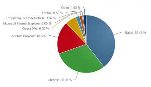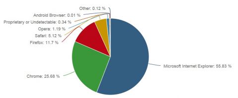 Что касается браузеров для ПК, лидирует Internet Explorer 11 со значением 25,04% (+0,82%), общая доля IE составляет 55,83%, Chrome 25,68%, Firefox 11,7%. В мобильном сегменте доминирует браузер Apple Safari с долей 39,49%, Chrome набрал 30,06%.