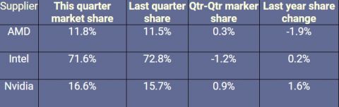 У AMD поставки увеличились на 5,16%, у Nvidia на 8,41%. Intel отстаёт от производителей дискретных видеокарт с ростом всего на 0,73%. Дискретные видеокарты используются в 31,28% компьютеров (+1,34%). Дискретная графика за квартал выросла на 6,57% и упала за год на 7,01%.