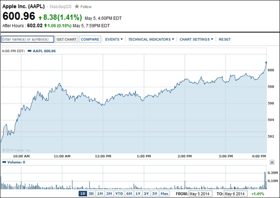 Ценные бумаги Apple в начале текущей недели преодолели отметку в $600 за штуку. Этого не наблюдалось с осени 2012 года.