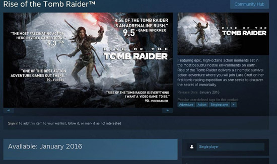 Страница Rise of the Tomb Raider в Steam указывает на релиз в январе