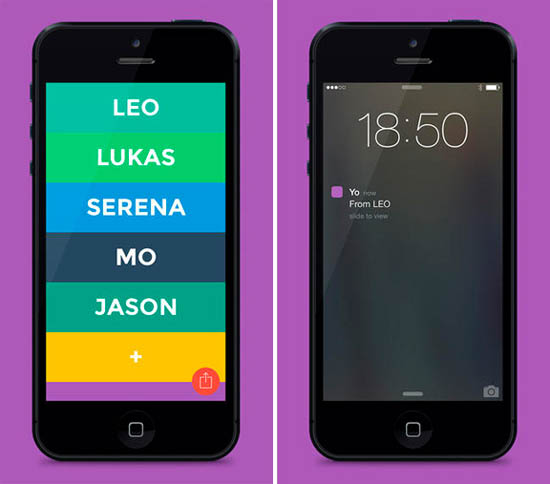 Принцип работы приложения Yo очень простой. С его помощью можно отправить приветствие своим друзьям по Facebook, Twitter или адресной книге в телефоне. Достаточно коснуться имени друга и он сразу получит от вас «йоу» – звук воспроизводится динамиком смартфона, а на экране push-уведомление. По сути, это максимально упрощенный способ привлечь внимание, начать беседу или дать понять близкому человеку, что думаешь о нем, который заменяет приевшуюся фразу «приветкакдела».