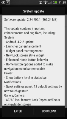 В подтверждение этому LlabTooFeR опубликовал снимок экрана HTC One с оповещением о наличии нового ПО и первой частью списка нововведений и улучшений, который полностью совпадает с таковым у китайской версии смартфона. В нем есть как системные изменения, пришедшие с новой версией ОС, так и некоторые улучшения удобства использования фирменных функций.