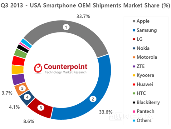 Уже долгое время компании Nokia не особо везет на рынке США, конкуренция слишком сильная для достижения желаемых результатов. Однако, похоже, ситуация меняется к лучшему. Исследовательская организация Counterpoint, занимающаяся анализом рынка, опубликовала цифры за третий квартал текущего года. Согласно им, бренд Nokia набирает силу, доля компании за год выросла с 0,7% до 4,1%, а за квартал - с 1,4% до 4,1%.