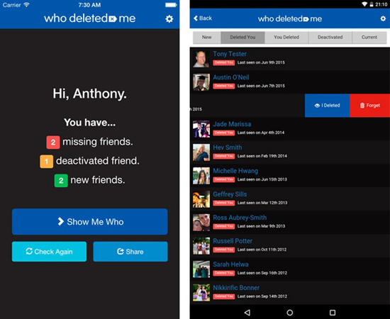 "Кто удалил меня в Facebook" построено по достаточно простой схеме – оно просто сверяет новый и старые списки с момента последнего входа и выдает разницу. То есть автоматизирует то, что слишком долго было сверять вручную. Также приложение позволяет быстро отомстить – удалить человека в ответ, просто нажав кнопку на против его имени.