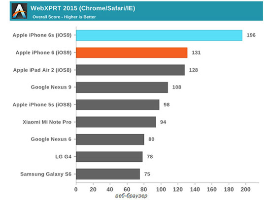 Технический портал AnandTech попытался максимально точно рассказать о функциональных возможностях iPhone 6s и iPhone 6s Plus, в частности о скорости работы, с помощью статистических данных об аккумуляторе, а также скорости памяти, просмотра веб-страниц, запуска игр и пр.