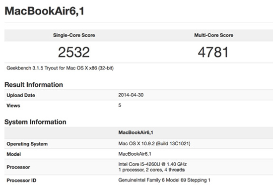 Ресурс Primate Labs обнародовал результаты тестирования производительности обновленных ноутбуков MacBook Air, построенных на процессорах Intel Haswell последнего поколения. Apple слегка улучшила производительность моделей линейки и изменила цены на версии «воздушных» ноутбуков с 11- и 13-дюймовым дисплеем.