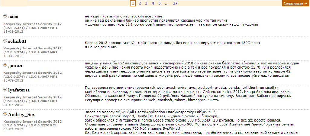 Не смотря на некую радужность презентации, хотелось «подлить масла в полымя». Не секрет, что для домашних пользователей антивирусные программы «Лаборатории Касперского» нередко становятся реальной головной болью. Юзеры жалуются на загруженность и торможение компьютеров из-за антивируса (скриншоты ниже).