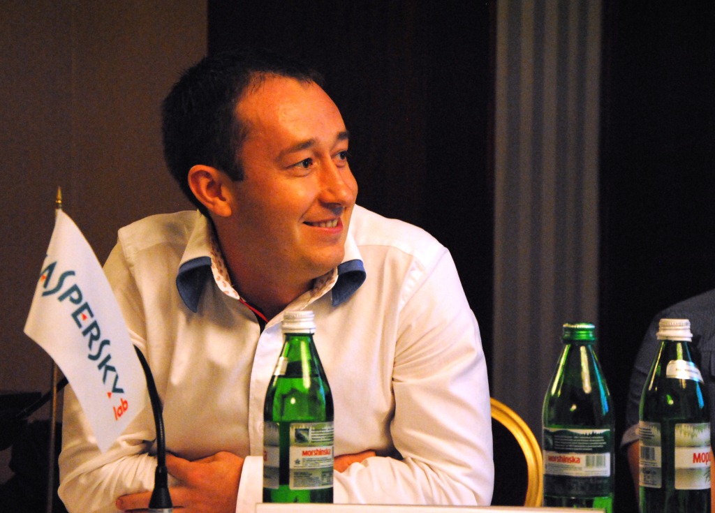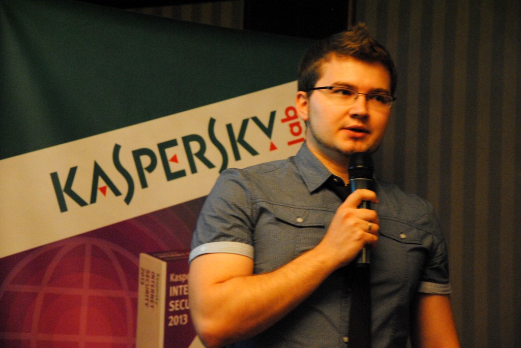 Виталий Камлюк, ведущий антивирусный эксперт «Лаборатории Касперского» подготовил презентацию о вирусных угрозах: «Меня сильно беспокоят эти угрозы, потому что на самом деле больший риск составляют не столько вирусописатели, сколько добрые пользователи, которые вообще не готовы к современным технологиям». Виталий приводил статистику глобальной гаджетизации и ее последствий. К примеру, в среднем на одну украинскую семью приходится 3 современных гаджета, и далеко не все из них защищены антивирусными программами. Как оказалось, 34% опрошенных пользователей предпочитают защищать свои устройства элементарно подбираемыми паролями. 63% украинских пользователей призналось, что не могут распознать фишинг. Не сложно сделать вывод о низком уровне информационной безопасности обычного пользователя. Количество вирусных сигнатур на 12 июля 2012 года превысило 8,5 миллионов. «Чтобы повысить свое информационное здоровье, старайтесь пользоваться онлайн-ресурсами передачи данных, будьте осторожны при получении сообщений-вложений даже от друзей, а также используйте защищенные соединения», - посоветовал Виталий Камлюк аудитории.