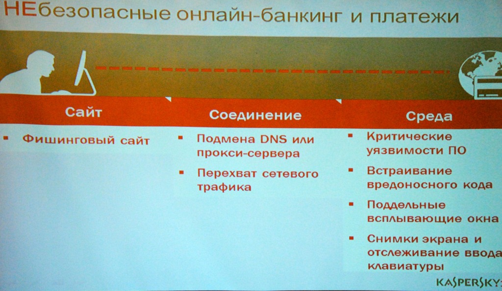 Как заметил Александр Савушкин, управляющий директор «Лаборатории Касперского» в Украине, Молдове и Республике Беларусь, главная разработка представленных антивирусных продуктов – безопасность работы с системой онлайн-банкинга. Она предусматривает совершенно новые технологий для борьбы с наиболее распространенными и сложными угрозами, нацеленными на личные данные и банковские счета пользователя: «Безопасные платежи», «Виртуальная клавиатура» и «Автоматическая защита от эксплойтов».