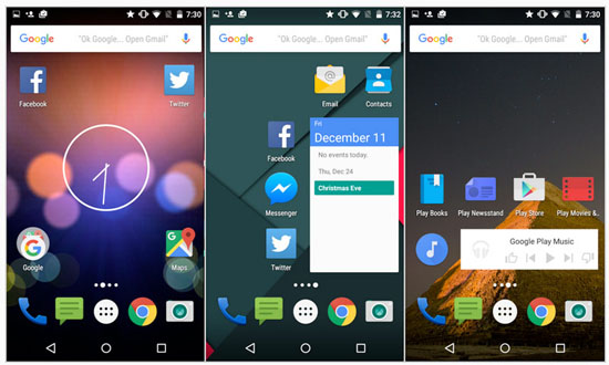 Виджеты – одна из главных особенностей интерфейса Android. Интерактивные элементы можно закреплять на рабочем столе, расширяя его функциональность. Пользователь может вынести на домашний экран большие часы, избранные контакты, ленту Facebook, последние входящие письма, ярлыки для заданных заранее маршрутов навигатора и т.д.