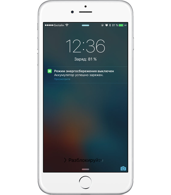 Повторное включение режима энергосбережения: после получение уведомления о выключении энергосберегающего режима сделайте свайп влево, чтобы активировать его повторно.