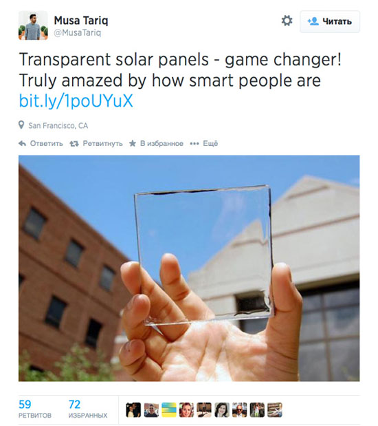 Ряд исследователей уже проводят эксперименты по включению солнечных панелей в сенсорные дисплеи или их установке под экран гаджетов. Ученые из Мичиганского государственного университета разработали новый тип концентратора солнечной энергии. Поскольку материалы не поглощают и не излучают свет в видимом спектре, человеческому глазу они кажутся совершенно прозрачными. В результате солнечные батареи легко могут быть добавлены в защитную панель мобильных устройств отдельным слоем или интегрированы непосредственно в дисплей.