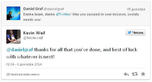 - @danielgraf, спасибо за все, что вы сделали, и удачи в будущих начинаниях!, - отметил на странице микроблога Кевин Вейл.