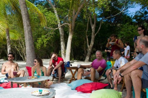 Знаменитый Ричард Брэнсон (Richard Branson), британский миллиардер и владелец корпорации Virgin, человек своеобразный и очень подвижный. Поэтому офис у него на свежем воздухе, у бассейна, расположенного на собственном острове сэра Брэнсона. И он не любит работать без общения, предпочитая постоянно заводить новые знакомства и общаться со старыми друзьями. И подкармливать малознакомых туземцев.