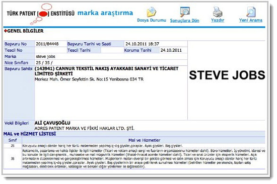 Об этом на днях стало известно, благодаря турецкому Ведомству по патентам и торговым знакам, которое опубликовало патент от предпринимателя Камилы Курекчи на товарный знак «Стив Джобс».