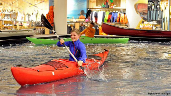 Вы заинтересовались каноэ или надувной лодкой? Пожалуйста, можете сделать пробный заезд а специальном бассейне. Для альпинистов и скалолазов есть стена для лазания, пишет DW. В таком магазине покупатель охотно готов платить чуть больше, чем в интернете. Действительно, почему бы и не заплатить за удовольствие?